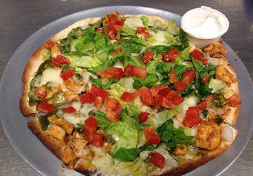 Open faced 10" tortilla with melted cheese & onions and your choice of delicious filling. Topped with lettuce and tomato. Served with a side of sour cream.