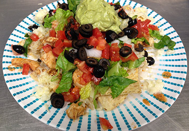Meat, beans or potatoes on a bed of chips w/ cheese, tomatoes, black olives, onions, & romaine, spinach, kale or a combo of all three. Served with a side of our special sauce.